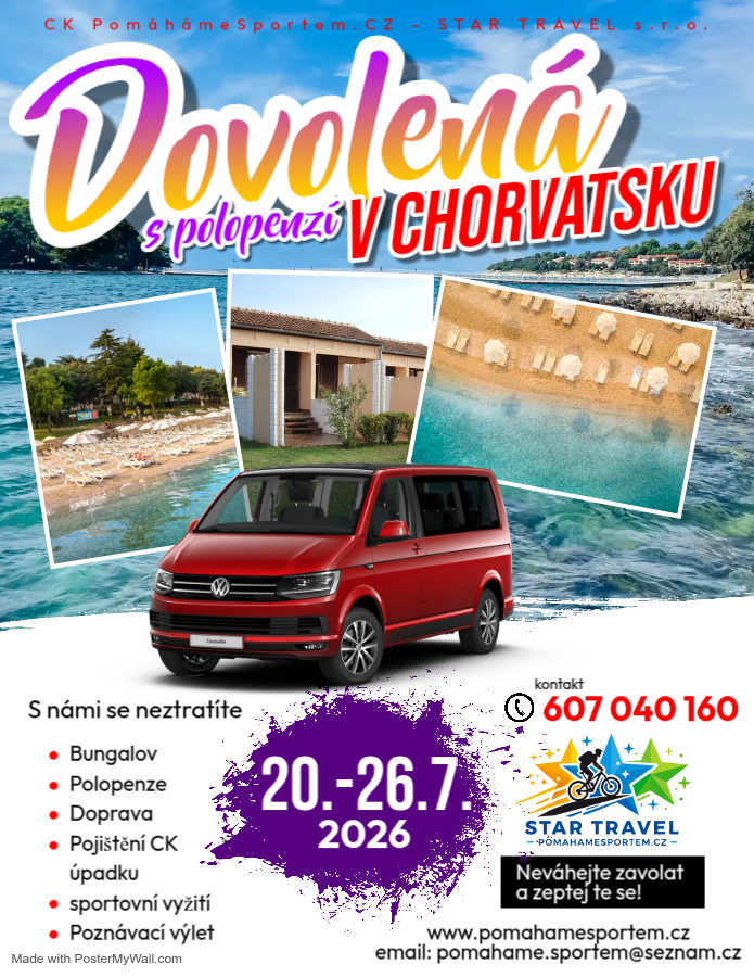 Cestovní Kancelář PomáhámeSportem.CZ - STARTRAVEL s.r.o. vás zve na cyklistické, turistické, meditační a dovolenkové pobyty v ČR i v zahraničí. Ceny jsou s dopravou, ubytováním s možností vybrat si stravování a dalšími službami. Stačí jen rozkliknout, prozkoumat, popřípadě zavolat a přihlásit se. Těšíme se na vás.