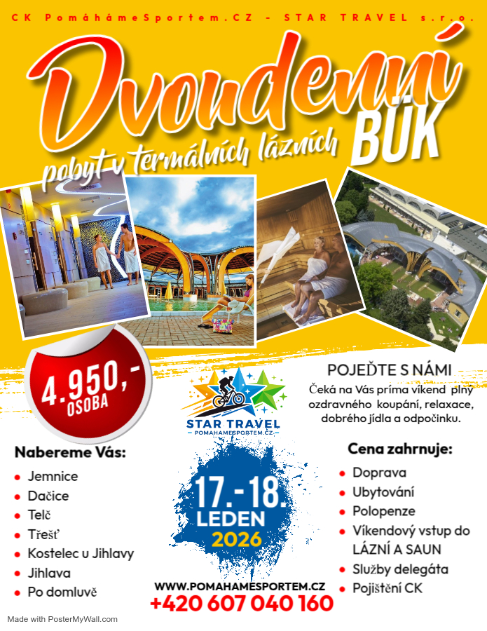 Cestovní Kancelář PomáhámeSportem.CZ - STARTRAVEL s.r.o. vás zve na cyklistické, turistické, meditační a dovolenkové pobyty v ČR i v zahraničí. Ceny jsou s dopravou, ubytováním s možností vybrat si stravování a dalšími službami. Stačí jen rozkliknout, prozkoumat, popřípadě zavolat a přihlásit se. Těšíme se na vás.