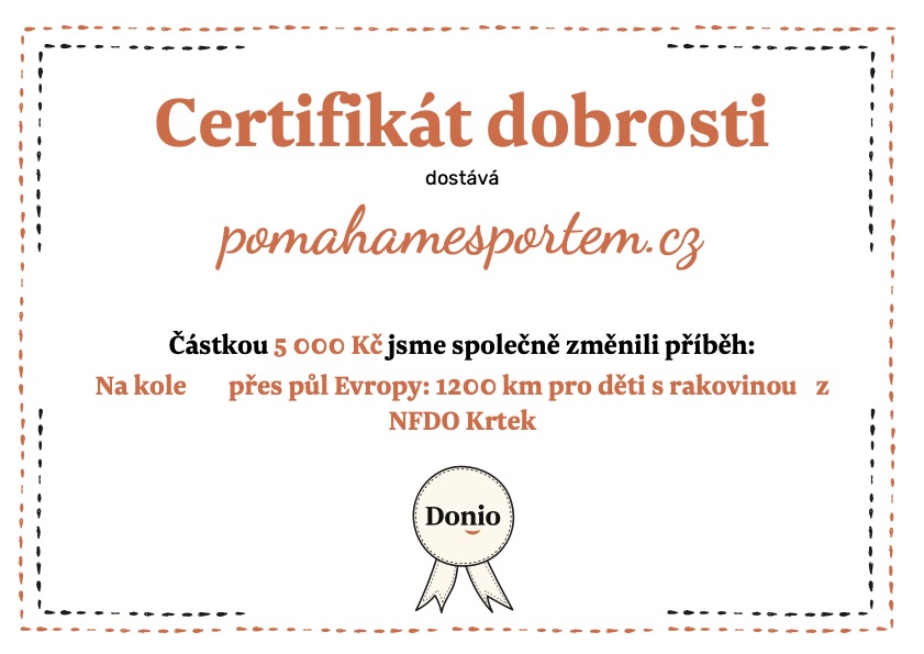 Na kole přes půl Evropy. 1200km pro děti s rakovinou. Vše pro Na dační fond Krtek. Výtěžek putuje na pomoc onkologicky nemocným dětem.